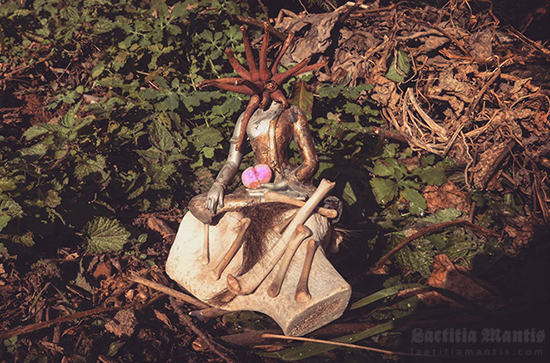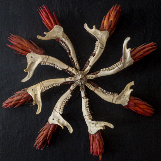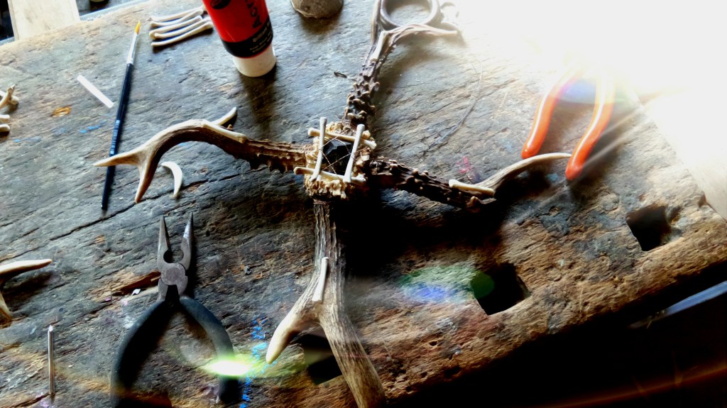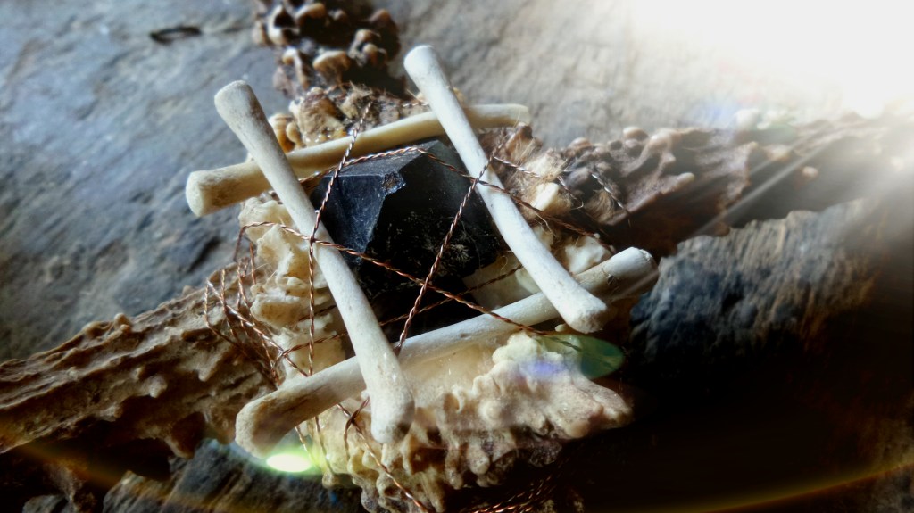 Crown Of Creation – assembled sculpture (wood, ceramics, plastic, bones, acrylic paint & bronze paint)