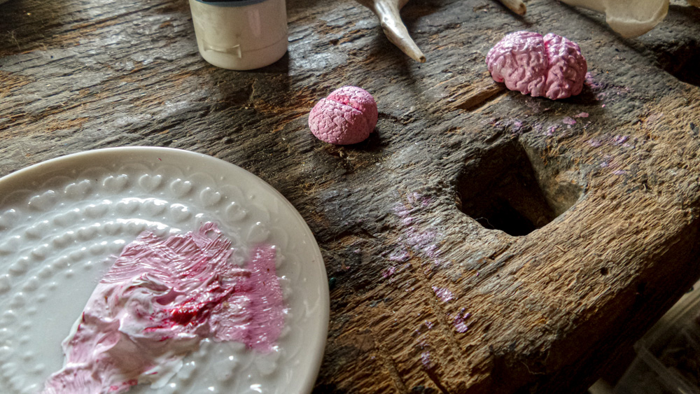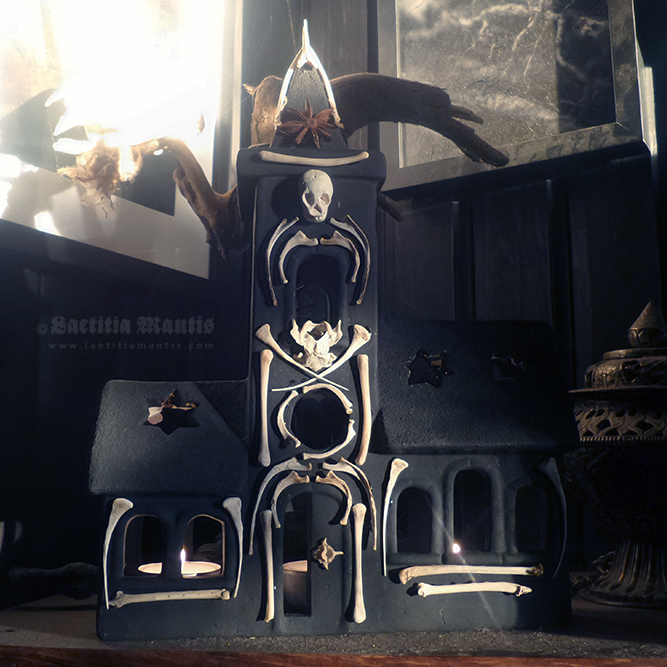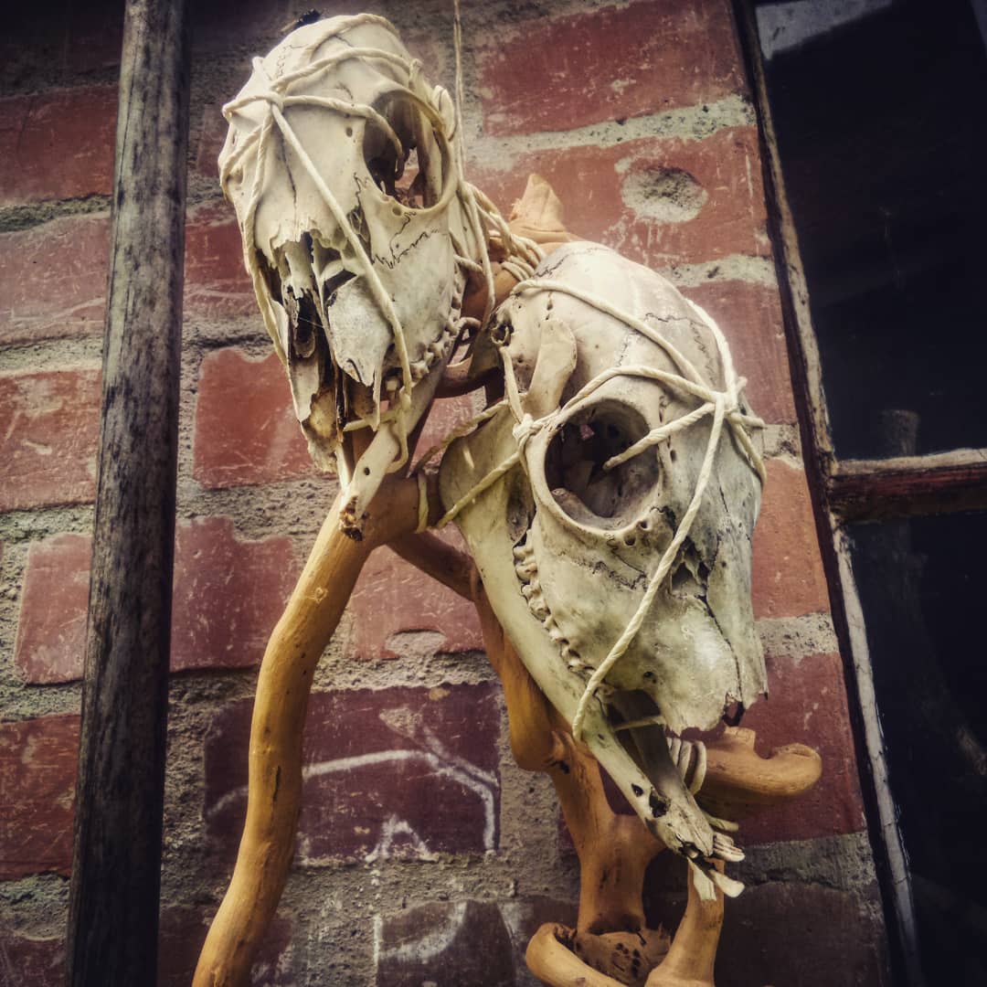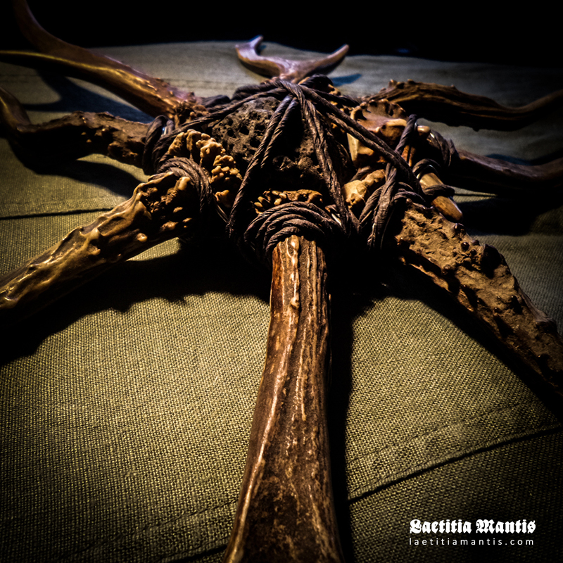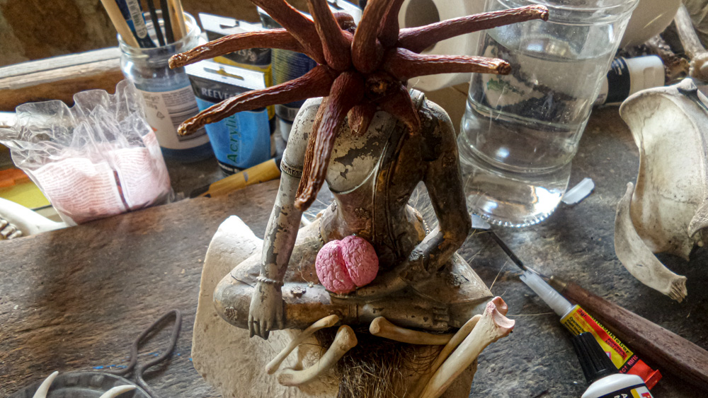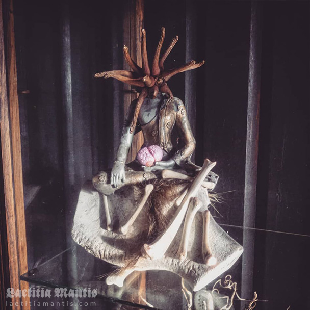 Crown Of Creation – assembled sculpture (wood, ceramics, plastic, bones, acrylic paint & bronze paint)